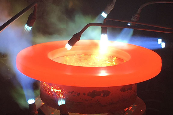 酸素・アセチレン炎トーチにて再溶触し素材と溶射層との間に合金層を形成させると同時にノン・ポーラスな面にします。この時の表面温度は1050度~1100度になります。